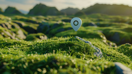 Digital location pin over a lush green hillside