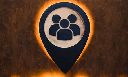 Icon sociality made of wood with light