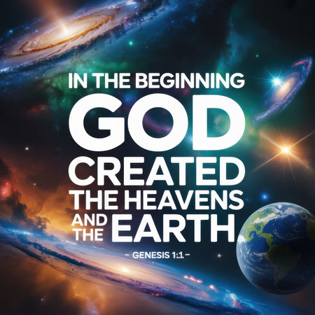 Divine creation narrative, biblical concept of God creating the world and everything in it in six days. Religion Theology.