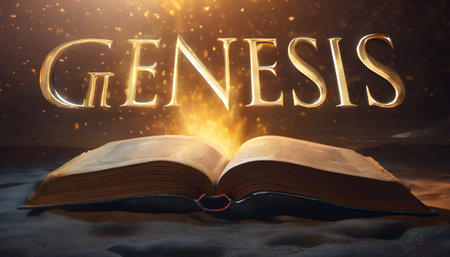 Holy Bible open to Genesis, Chapter 1. Warm tones.