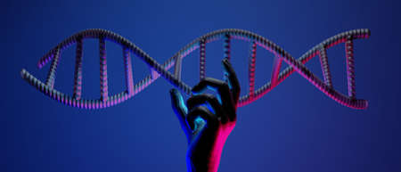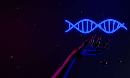 hand with dna human helix molecules cell, research of science biological,man with blood structure genome, 3d illustration rendering