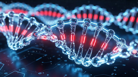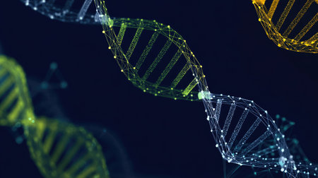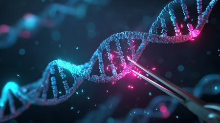 This image shows a futuristic representation of genetics and scientific discovery, perfect for illustrating innovation