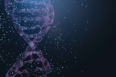 Background on theme of genetics. DNA molecules symbolize gene changes. Background texture on scientific subjects. Illustration with DNA as a metaphor for science. Pattern 3d with DNA strand