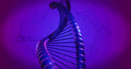 Image of macro of purple 3d dna strand spinning. science and research concept digitally generated image concept digitally generated image.