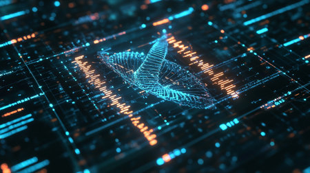 A glowing digital representation of a DNA double helix illuminates a screen filled with complex genomic data. This futuristic visual represents a breakthrough in biotechnology, symbolizing the intersection of genetic research, artificial intelligence, and advanced medical diagnostics for the future of healthcare.