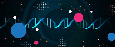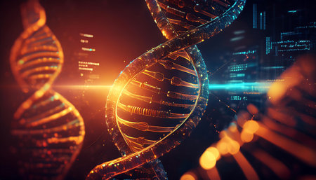 Science-themed background featuring a helix structure and genetic elements