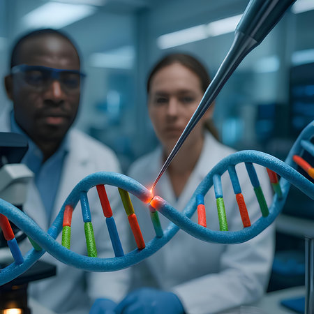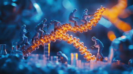 Scientists Working on DNA Helix in High-Tech Laboratory Setting