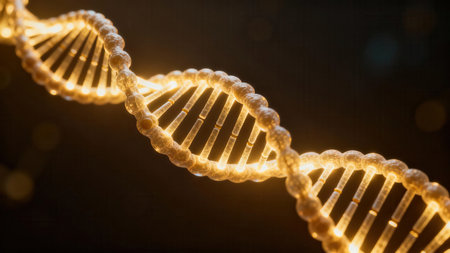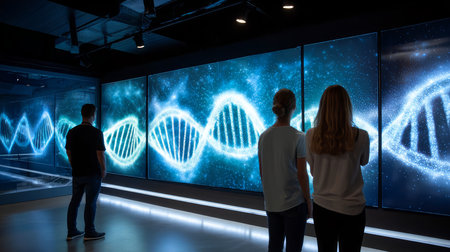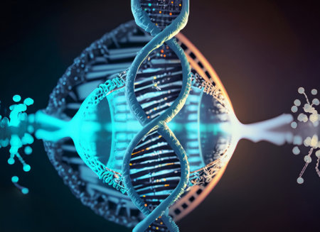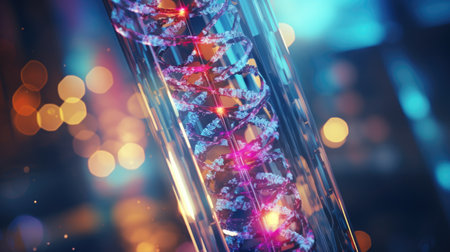 The captivating structure of DNA is showcased with vibrant lighting, creating a stunning visual effect in a dark setting.