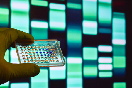 A scientist analyzes DNA strands utilizing state-of-the-art technology and methods in a lab
