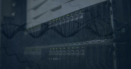 Composition of dna strand over server. Technology, computing and digital interface concept digitally generated image.