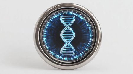 This captivating image showcases a 3D rendering of a DNA structure within a transparent capsule, symbolizing innovations in genetic research and biotechnology, perfect for scientific context.