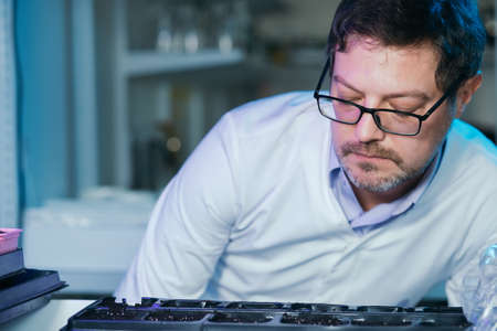 Portrait of a male laboratory assistant. Watching the seeds grow