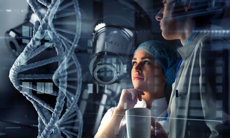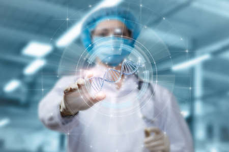 New technologies in medicine. Scientist and molecule of DNA