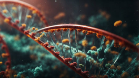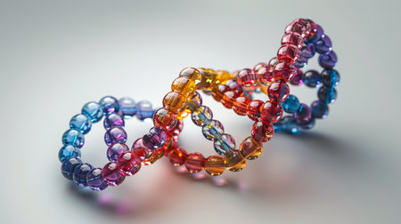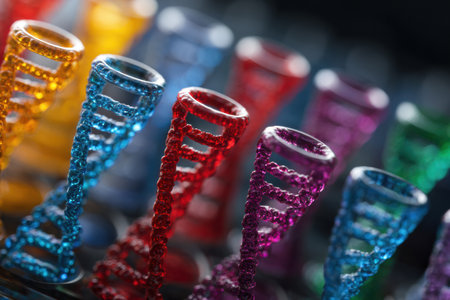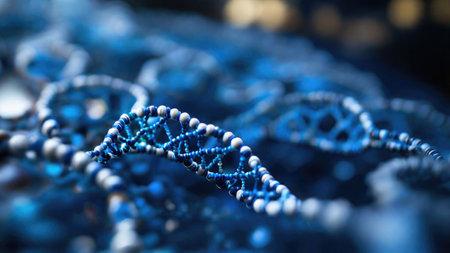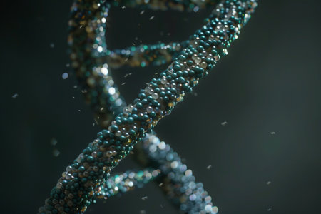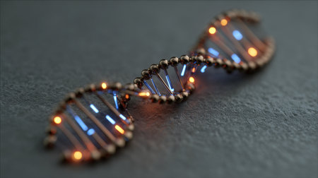 A detailed view of DNA strands with glowing accents arranged artistically on a dark surface