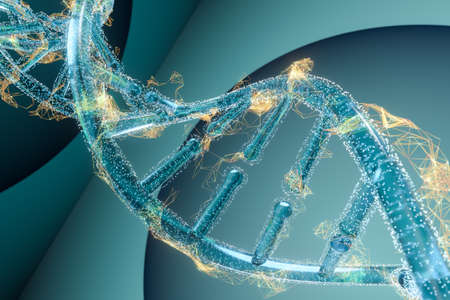 Background on theme of genetics. DNA molecules symbolize gene changes. Background texture on scientific subjects. Illustration with DNA as a metaphor for science. Pattern 3d with DNA strand