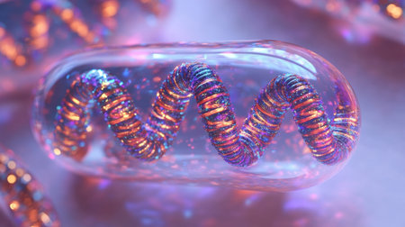Stunning digital artwork showcasing a glowing DNA strand encased within a transparent capsule, emphasizing the advancements in genetics and biotechnology.