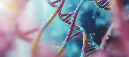Explore a stunning close-up image of a colorful DNA double helix structure, showcasing the beauty of molecular biology against a captivating abstract background.