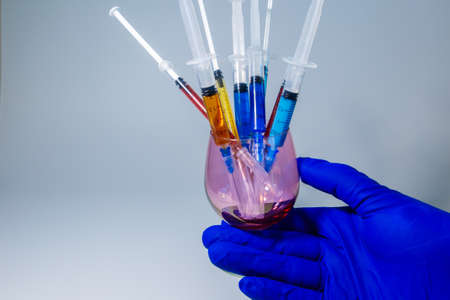 A set of medical syringes with color injections for cosmetology. The cocktail of the beautician for skin rejuvenation