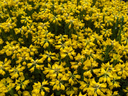 Image of a background made with yellow flower of blooming wild shrub