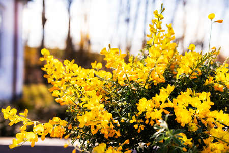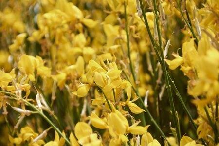 Italy - yellow flowers of cytisus bush close up on Etna mount in Sicily