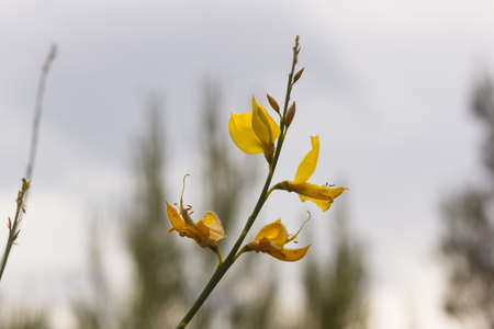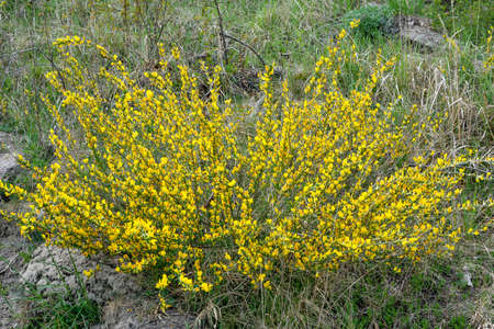 Common bloom ( Cytisus scoparius ) flowers. Fabaceae evergreen shrub native to the Mediterranean coast. Flowering season is from April to June. poisonous plant.