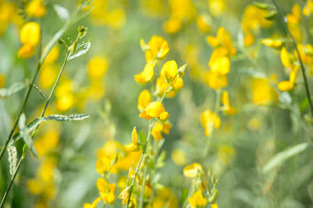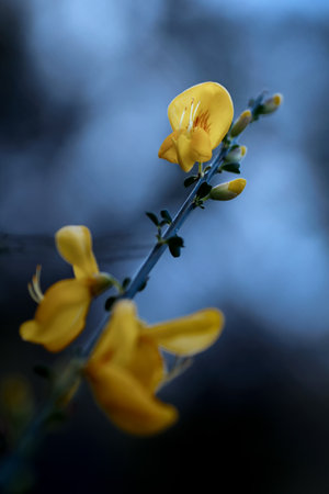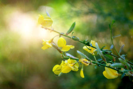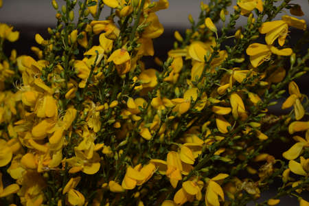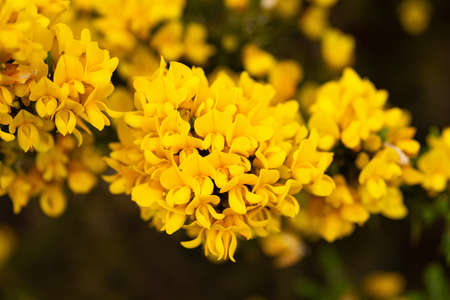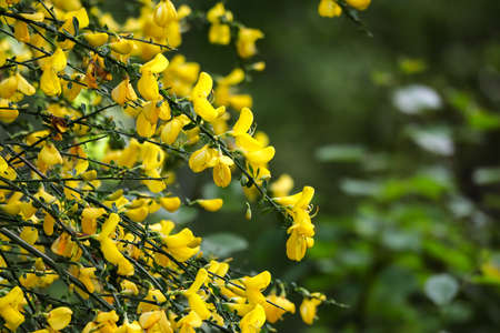 Common bloom ( Cytisus scoparius ) flowers. Fabaceae evergreen shrub native to the Mediterranean coast. Flowering season is from April to June. poisonous plant.