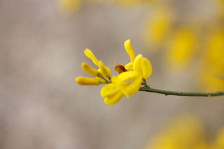 Detail of thin branches with small yellow flowers