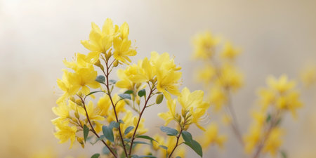 AI Generated. Vibrant Yellow Azaleas Bloom in Soft Focus