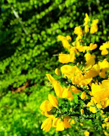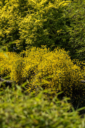 Blooming yellow flowers of Cytisus scoparius, Scotch broom.