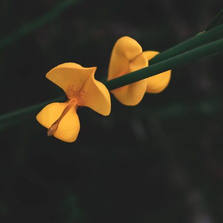 Beautiful yellow flowers on dark background. Selective focus. Toned.