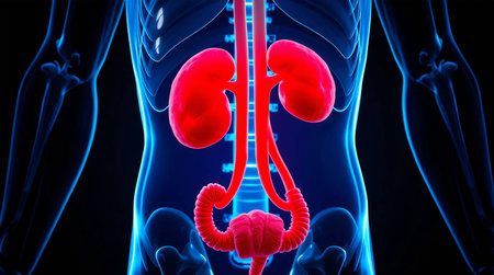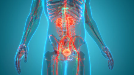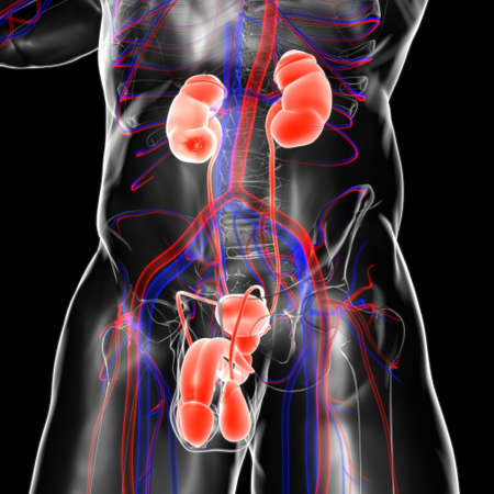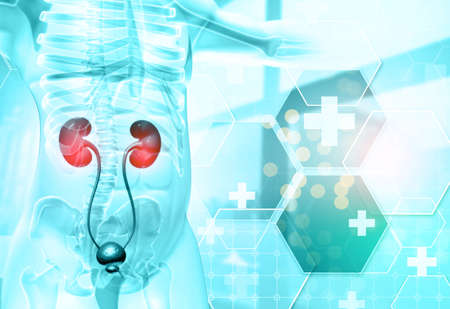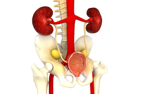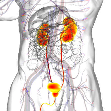 3D Illustration Concept of Human Urinary System Kidneys with Bladder Anatomy