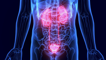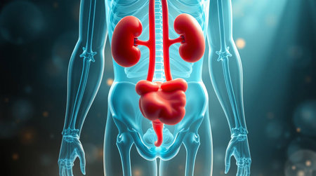 Human Urinary System Kidneys with Bladder Anatomy For Medical Concept 3D Illustration