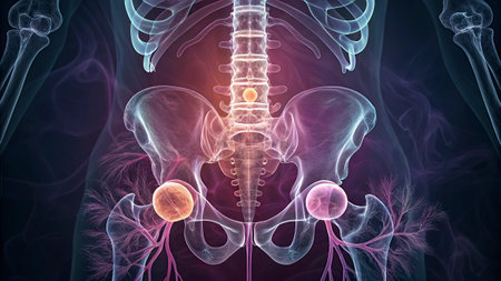Digital illustration of pelvic girdle in colour background 3D illustration of Human Urinary System Anatomy