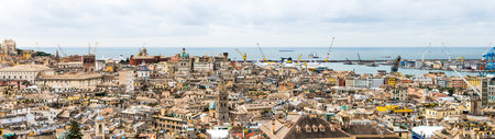 Genoa aerial panoramic view. Genoa or Genova is the capital of Liguria region in Italy.