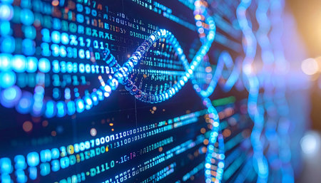 A glowing digital representation of a DNA double helix emerges from a complex stream of binary code. This image visualizes the cutting-edge field of bioinformatics, where genetic sequencing and big data analysis converge to unlock the secrets of life, heralding a new era of personalized medicine and scientific discovery.