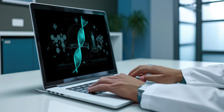 Scientist analyzing genetic data on computer screen
