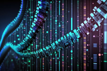 Big genomic data visualization. Digital AGCT code. Four bases of DNA pairing. Graphic concept for your design