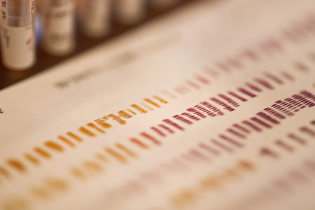 Close up view of DNA fingerprint results displaying unique forensic markers used in analysis.