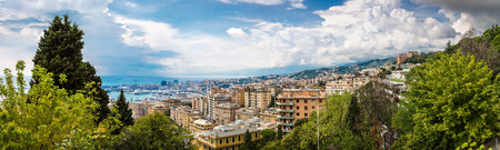 Panorama of Genoa city from Belvedere Castelletto observation desk, Italy
