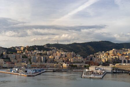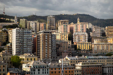 View of the city of Genoa from the sea, in Liguria, Italy