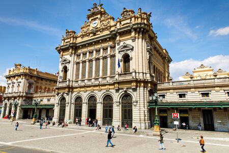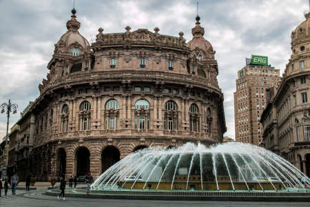 GENOA, ITALY - MARCH 16, 2014: Tourists visiting Piazza De Ferrari main square and fountain