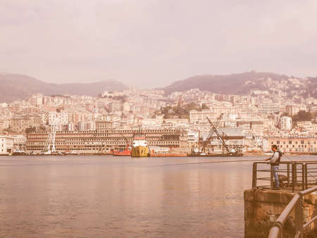 Vintage looking View of the city of Genoa from the sea