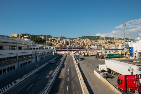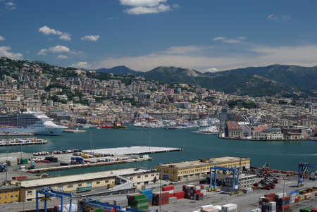 GENOA, ITALY - AUGUST, 28 Panoramic view of the port, the busiest of Italy and one of the most important in the Mediterranean area, on August 28, 2013 in Genoa