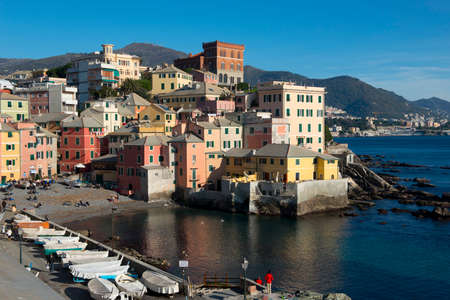 Is a little fisherman's village were people has boats in Genoa, mediterranean sea , Italy