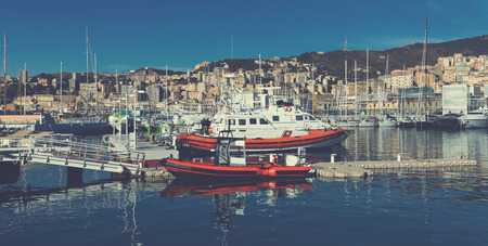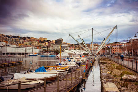 GENOA, ITALY - MARCH 16, 2014 - Since the construction of the new merchant harbour the old harbour called Porto Vecchio is still used for cruise ships and small boats vintage