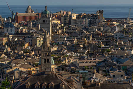 Cityscape of Genoa with its roofs and towers from Spianata Castelletto