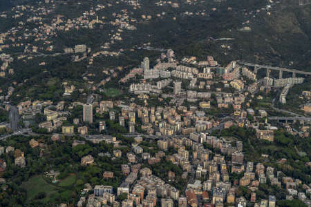 Aerial view of Genoa on the hill.