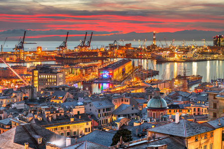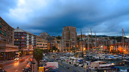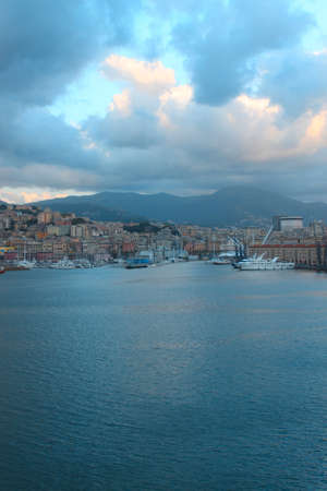 Evening view of Genoa port, Italy