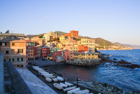 Boccadasse, a picturesque sailor quarter of Genoa at sunset, Italy