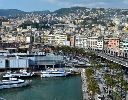 seafront of Genoa from the old port in a sunny day